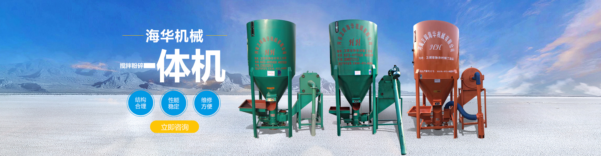 衛(wèi)輝市海華機(jī)械有限公司專業(yè)從事料塔料線、飼料攪拌機(jī)等方面的研發(fā)廠家,主要生產(chǎn)銷售散裝料塔、不銹鋼攪拌機(jī)、臥式攪拌機(jī)、小型飼料粉碎機(jī)、顆粒機(jī)、混合機(jī)等飼料機(jī)械設(shè)備。